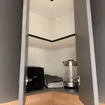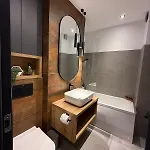 - ❓Welche Ausstattung bieten Badezimmer in des Apartments Noir&Honey, 10Min Walk To City Center?Das Apartment Noir&Honey, 10Min Walk To City Center verfügt über Badezimmer, ausgestattet mit einem Haartrockner, Badelaken und Hausschuhen.